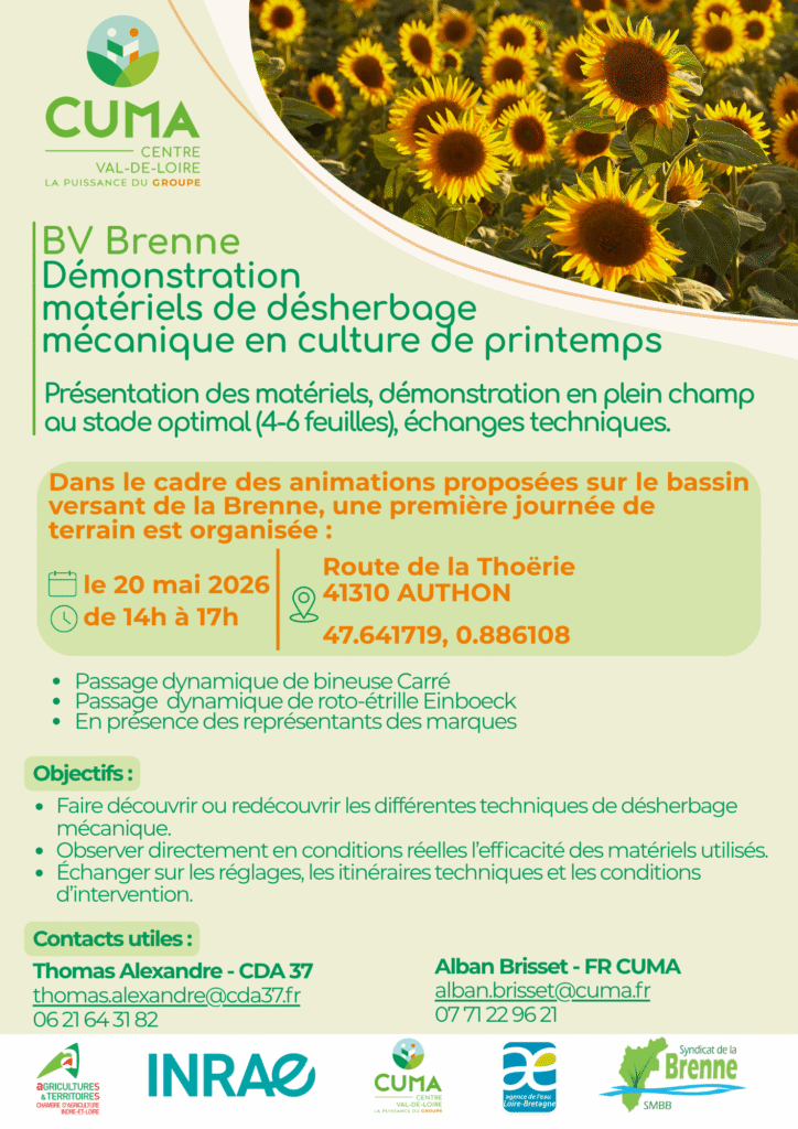 Une démonstration de matériels de désherbage mécanique est organisée sur le bassin versant de la Brenne.