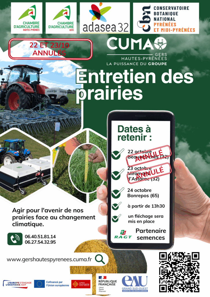 Suite aux fortes intempéries de ces derniers jours, nous sommes dans l’obligation d’annuler les démonstrations du mercredi 22 et jeudi 23 octobre sur décisions collégiales avec les éleveurs.