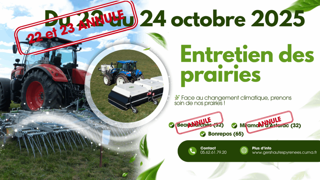 👉 Découvrez sur le terrain 4 après-midis de démonstrations de matériels pour allier technique, écologie et performance face au changement climatique ! Rejoignez nous du 22 au 24 octobre à Beaumarchés, Miramont d’Astarac et à Bonrepos (65) pour découvrir les bons outils et les bonnes pratiques. En collaboration avec les Chambres d’Agricultures du Gers et des Hautes-Pyrénées, l’Adasea du Gers et le Life Coteaux Gascons ainsi que le Conservatoire Botanique National des Pyrénées et Midi-Pyrénées (seulement sur la date du 23/09).