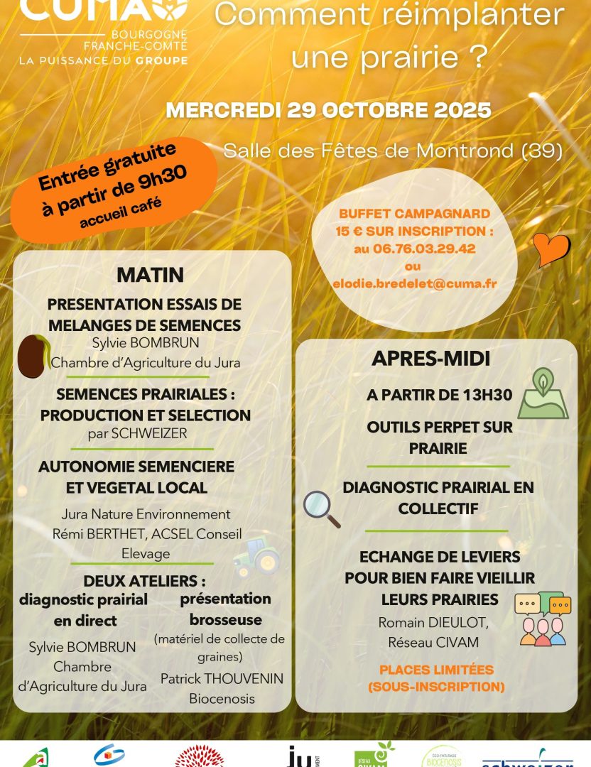 Dès 9h30, participez à une journée consacrée aux prairies : échanges, démonstrations et retours d’expérience avec des spécialistes et des agriculteurs.