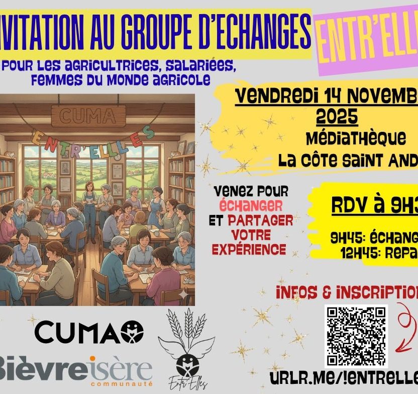Ainsi, à l’initiative d’un groupe d’agricultrices du réseau CUMA, une rencontre vous est proposée pour échanger sur ces questions.