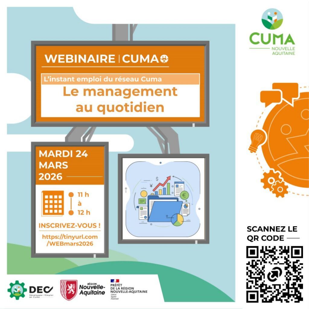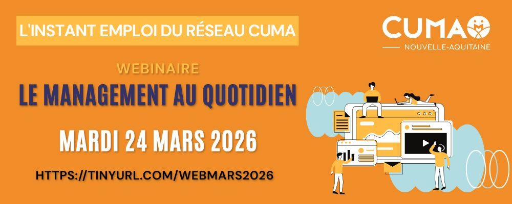 Le réseau Cuma propose lors d’un webinaire un exposé très pragmatique, opérationnel, à destination des employeurs de main-d’œuvre. A partir d’exemples concrets, l’objectif de ce webinaire est de vous donner des outils et des clés pour manager des situations du quotidien avec vos salariés.