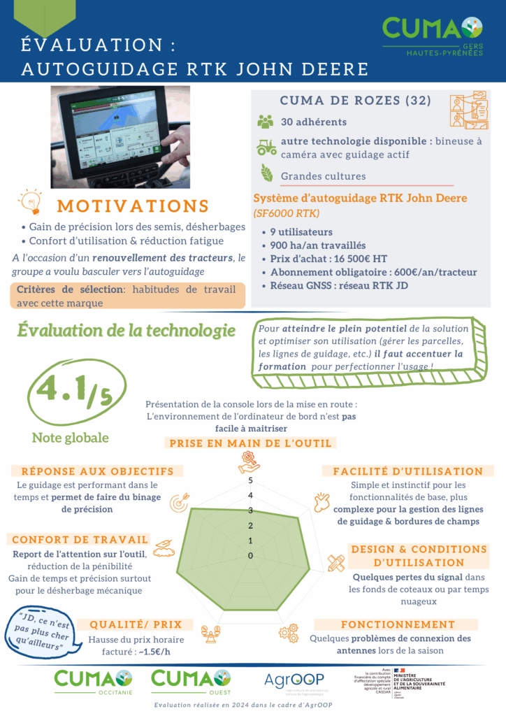 Retours terrain et évaluation des solutions d'autoguidage John Deere sur les tracteurs de la Cuma de Lombers