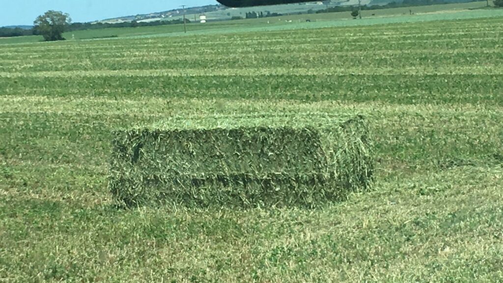 Pour la récolte du foin de luzerne, le matériel nécessaire (fauche, andaineur, faneuse, plateau) est géré par la CUMA, et Nicolas effectue lui-même le travail. “La chance d’avoir beaucoup d’éleveurs caprins dans la coopérative a initié une grosse entraide. Cette solidarité permet, par exemple, de trouver facilement un coup de main lorsque le temps devient critique pour presser le foin avant qu’un orage ne monte.”
