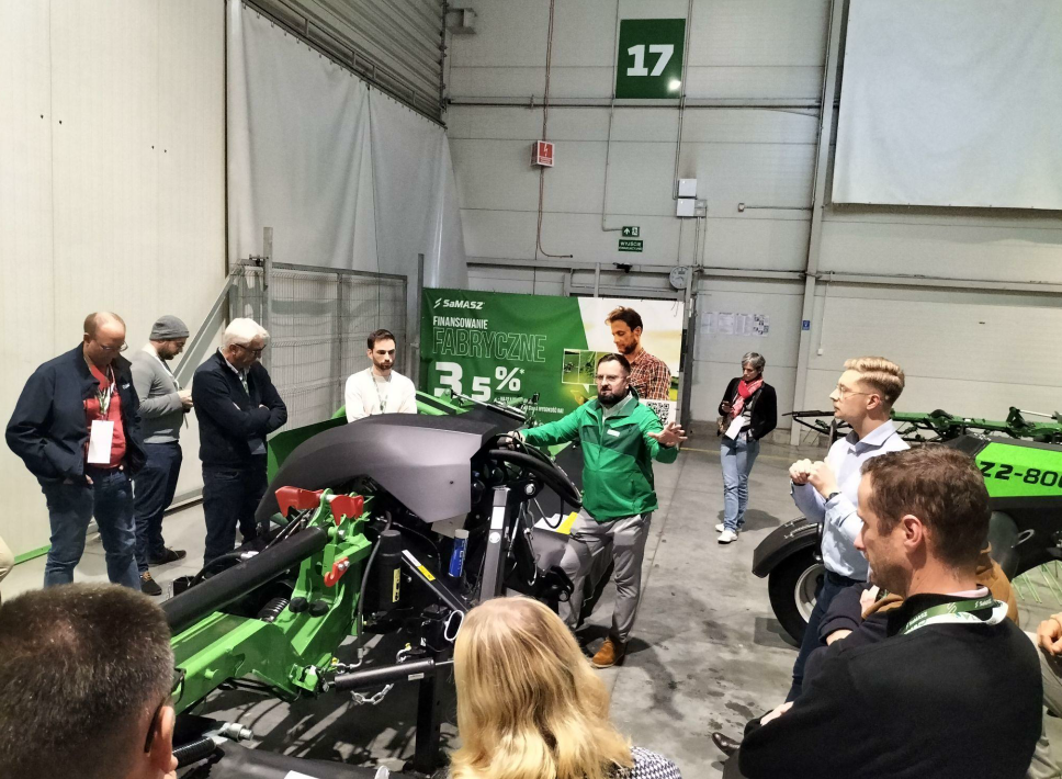 Nous avons pu échanger avec les ingénieurs du bureau de R&D. Une collaboration étroite unit l’Université polytechnique de Bialystok et les ingénieurs de SaMASZ. Un professeur de l’université, intervenant régulier pour l’usine, participe aux travaux de veille technologique et de protection des innovations (brevets, recherches,…). À noter qu’il est rare qu’un constructeur ouvre ainsi les portes de son service R&D à des visiteurs extérieurs. Ce geste témoigne de la relation de confiance que les responsables de SaMASZ accordent au réseau Cuma.