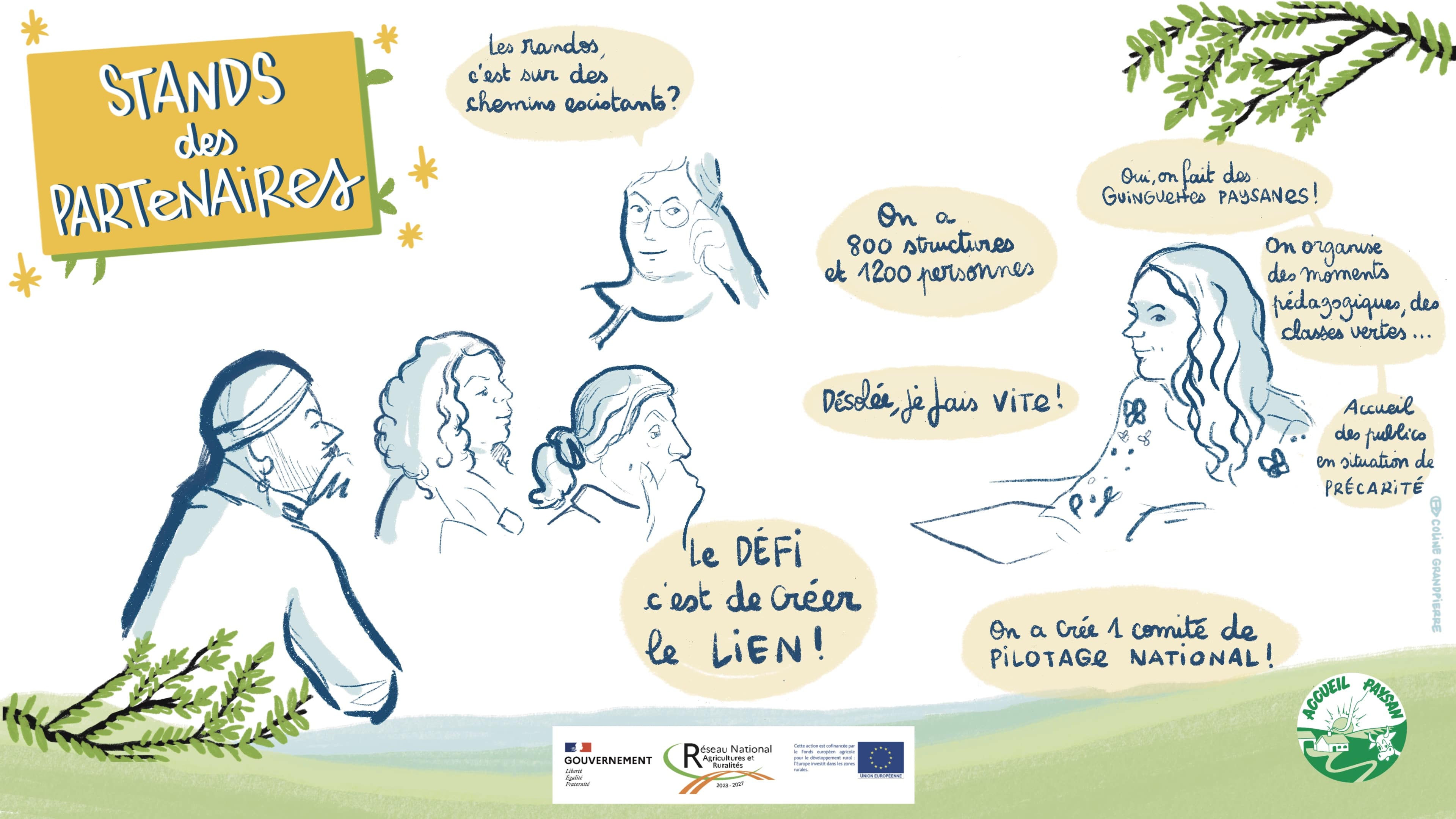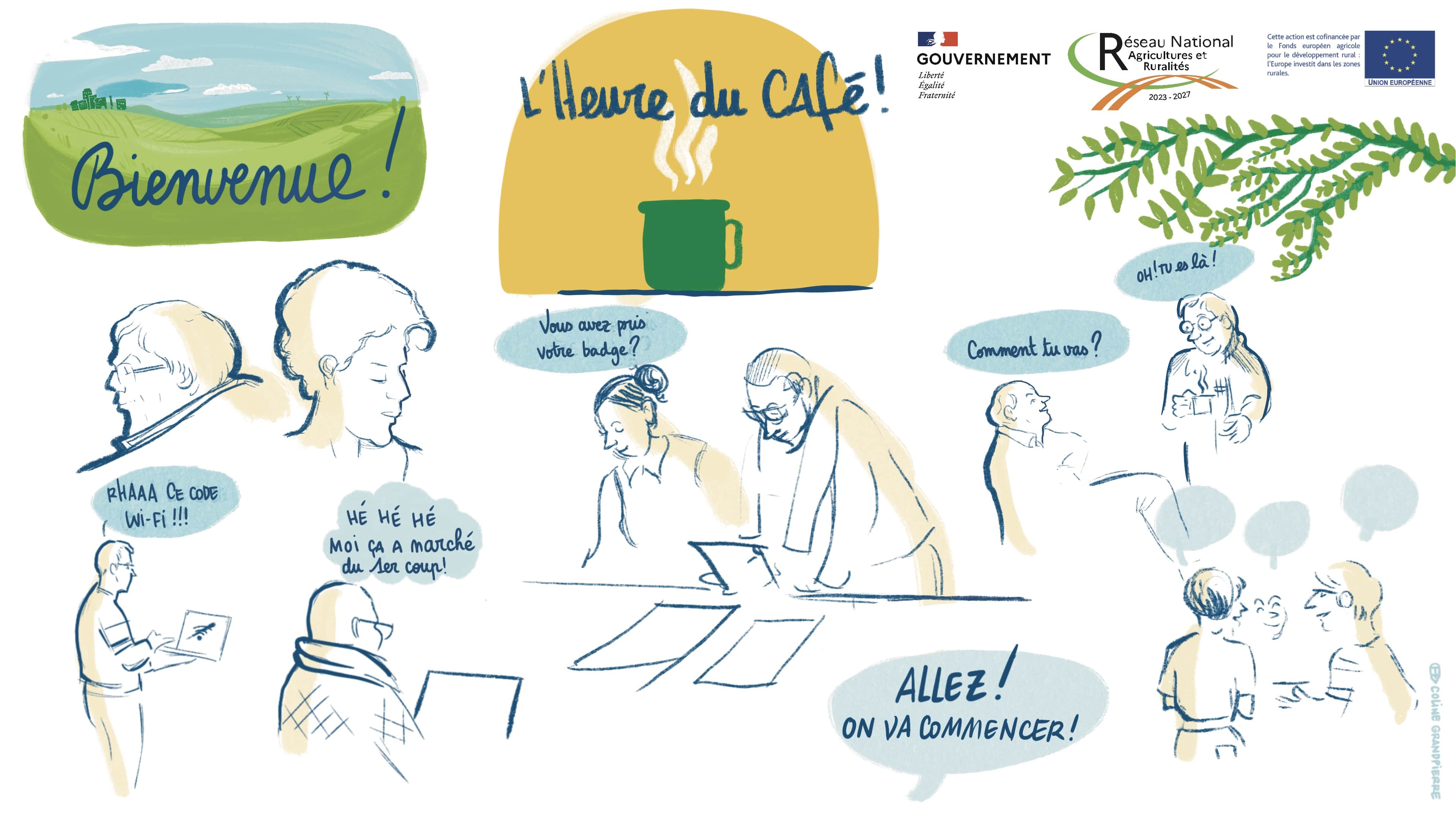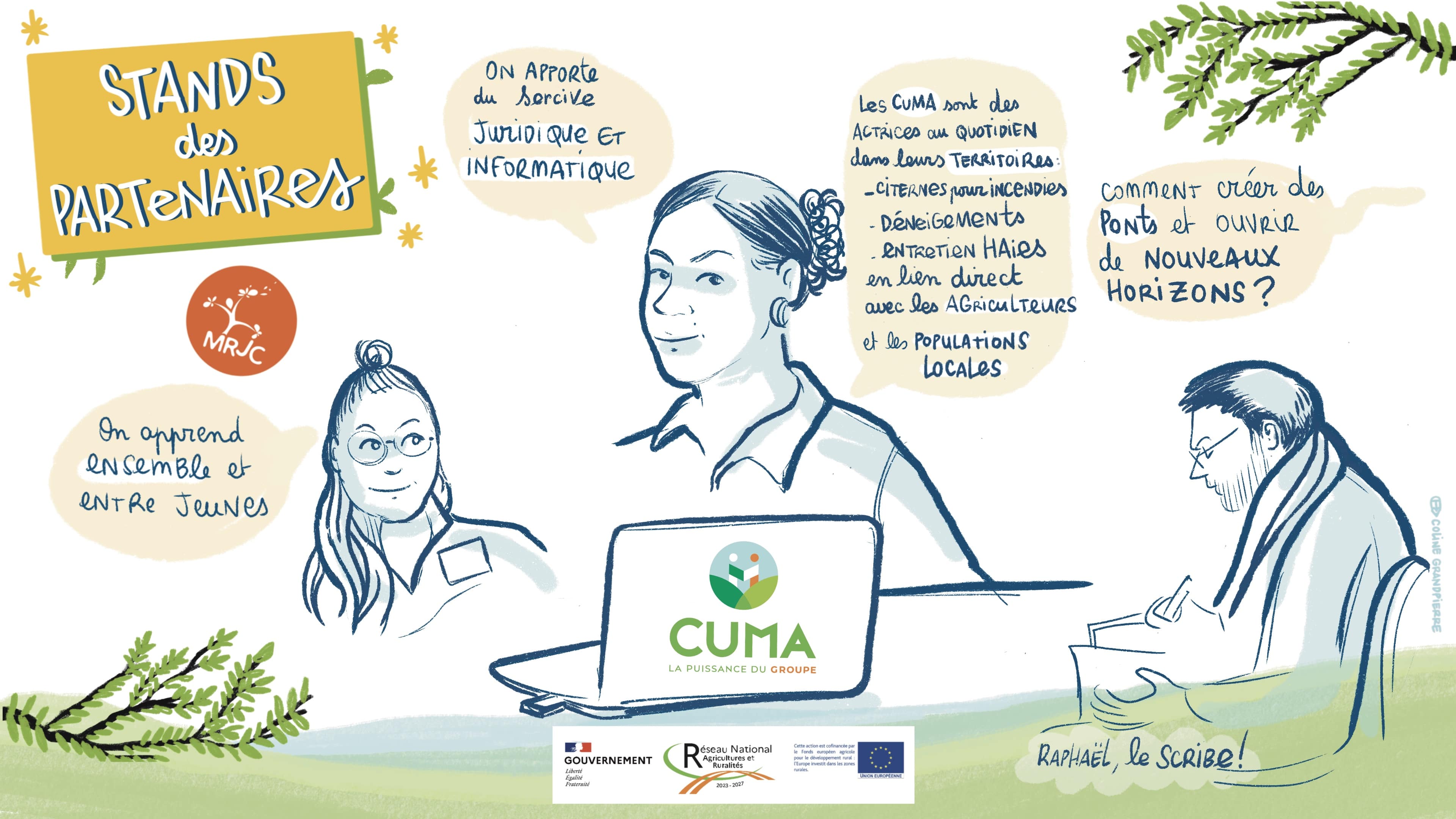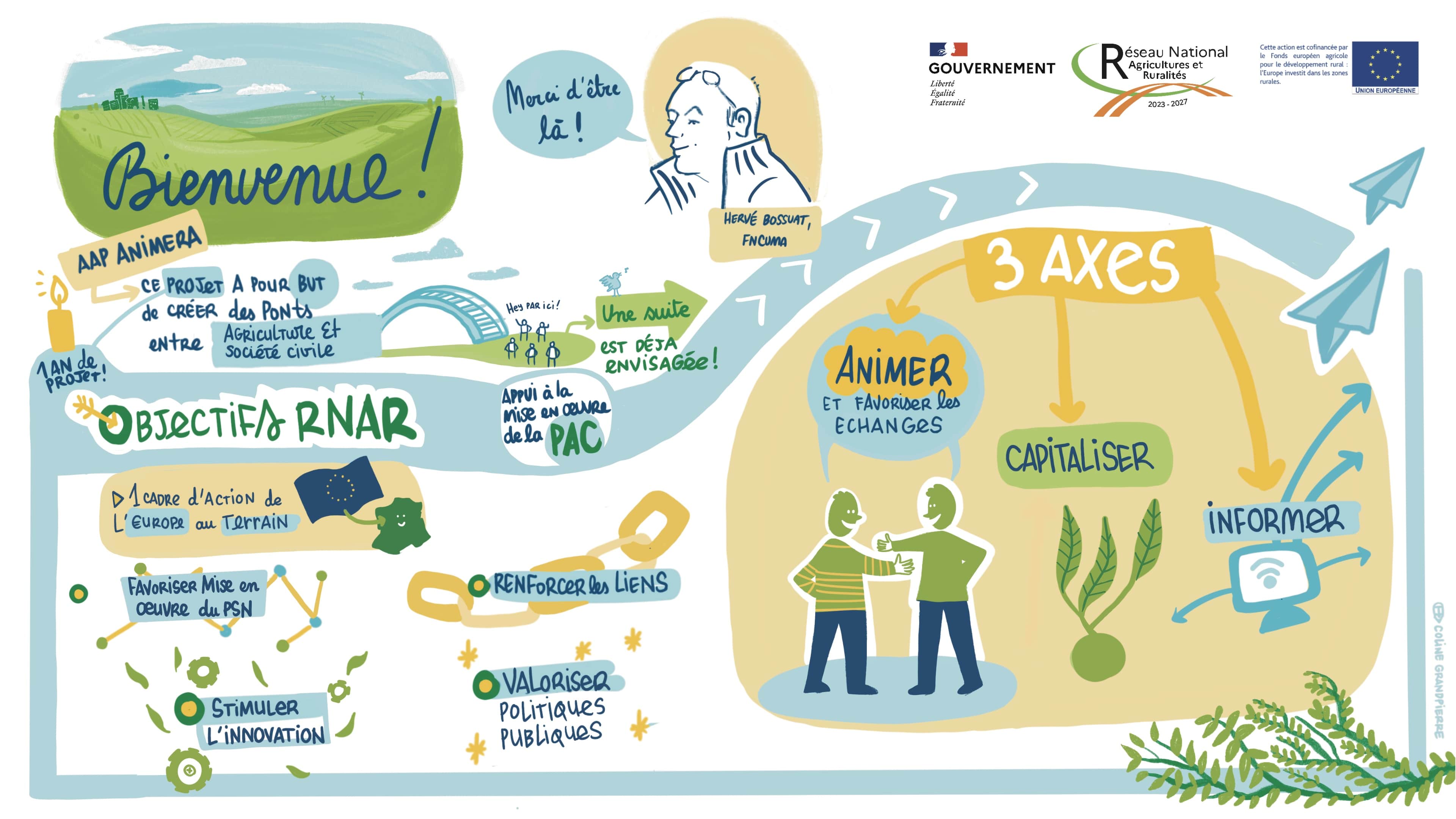 Le 27 février s’est tenu le séminaire final du projet DECLOISONNONS, réunissant la FNCuma et 7 partenaires, les membres de leurs réseaux et des agriculteurs et agricultrices de collectifs, autour du thème “Le décloisonnement du monde agricole et du milieu rural”. Coline GRANDPIERRE, facilitatrice graphique, a illustré tout au long de la journée les temps forts du séminaire.